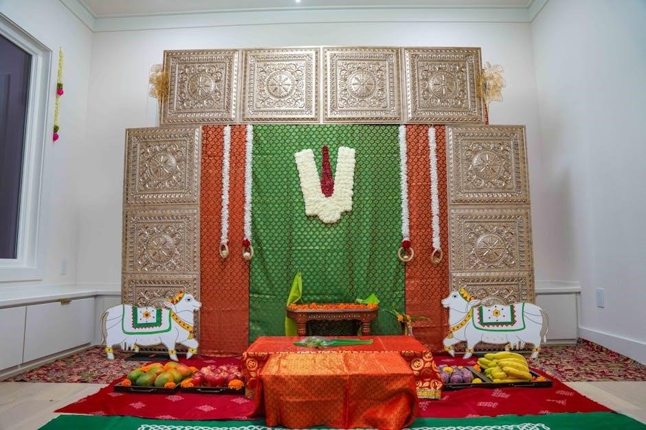 Devotees should also prepare offerings of sweet rice (prasad) and ensure they have a comfortable space for performing the rituals, referencing the detailed instructions within the Telugu PDF texts․